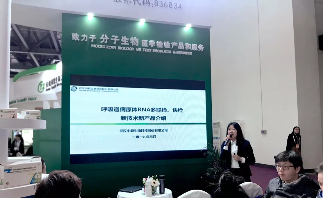 作為本次會議的參展商,武漢中幟生物科技股份有限公司攜“雙擴增技術(shù)(DAT)”-RNA多聯(lián)檢技術(shù)及配套中幟星?呼吸道病原體核酸檢測試劑盒、中幟靈?腸道病毒核酸檢測試劑盒;“RNA恒溫擴增-金探針層析技術(shù)(RGT)”-RNA快檢技術(shù)及配套呼吸道核酸檢測試劑盒隆重亮相,吸引眾多醫(yī)學(xué)檢驗專家和代理商參觀咨詢。