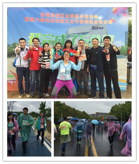 大賽在即,風雨意外襲來,但是抵擋不住參賽者的熱情。中幟生物團隊與高新區(qū)千余名徒步愛好者準時集聚生物城,參加了此次“春到光谷,健步未來”的千人徒步行走六公里活動。雖然風雨交加,但大家精神抖擻,笑容滿滿,經過近一個小時的行程,全部成員抵達徒步賽的終點。
